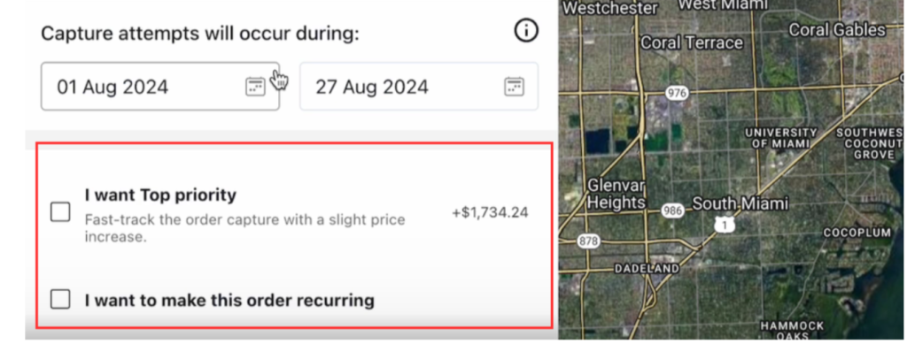 - Recurring Order: Enable this option if repeated captures are needed over time.